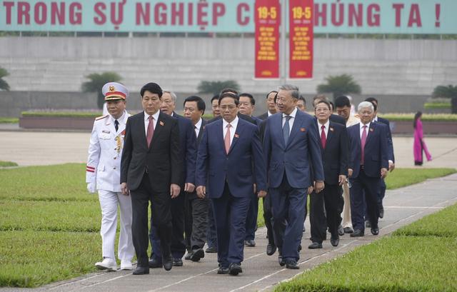 当地时间2024年5月20日,越南河内,越南领导人聚集在国会会议前向革命领袖胡志明致敬。