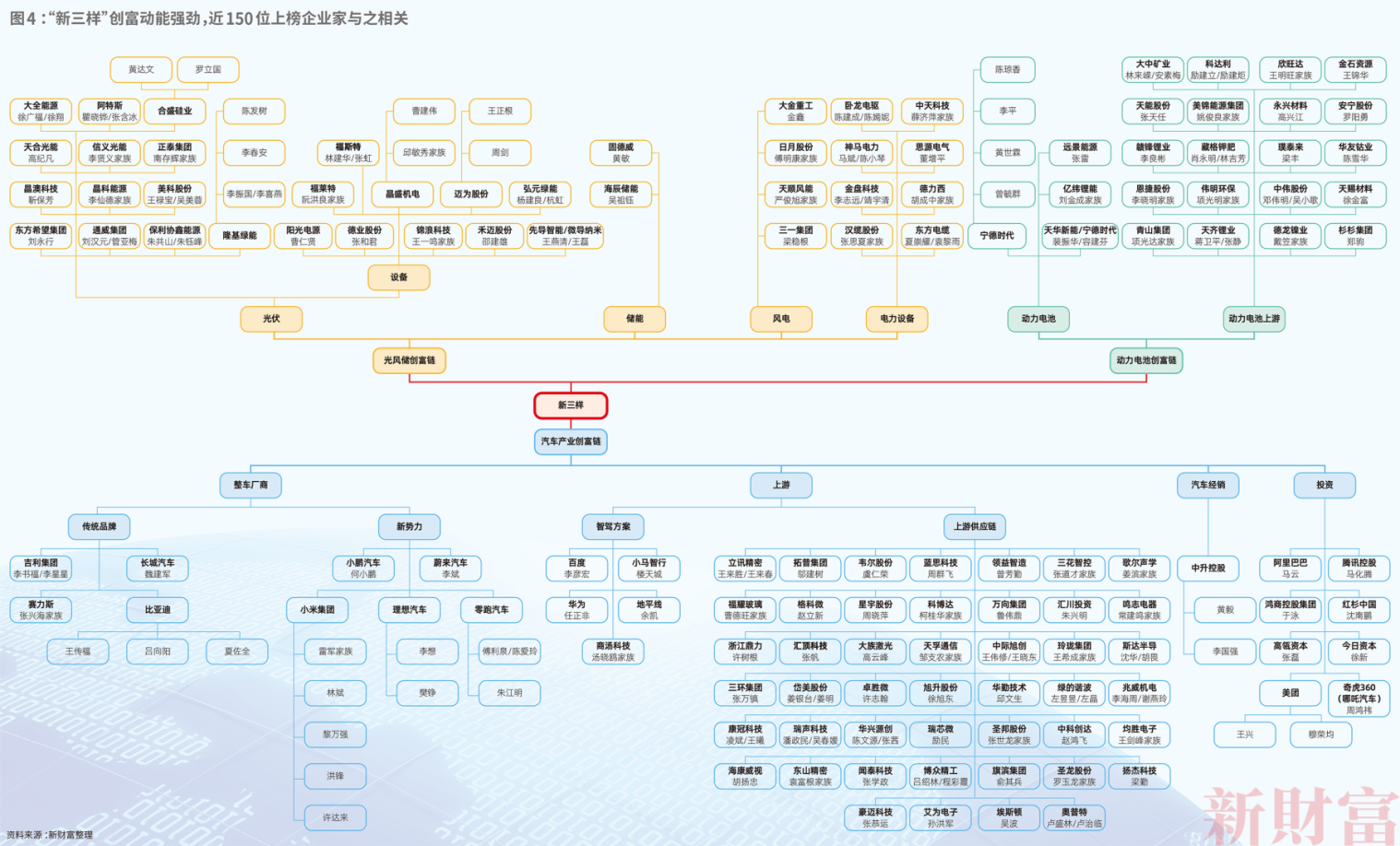 据新财富统计,光伏、动力电池、新能源汽车“新三样”就合计贡献了约148位上榜企业家,其人数占比已接近30%。从地产到“新三样”,新质生产力全面重塑了民企竞争力与创富力。